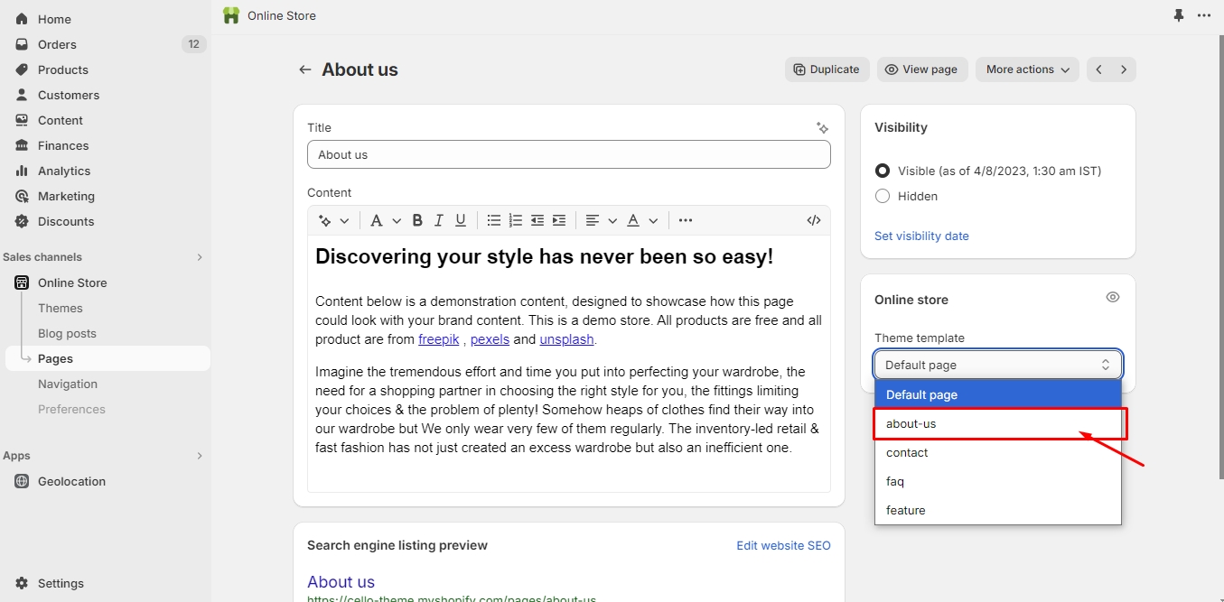 To create a page template, follow the steps below. It is mandatory to create a page template in the Publish Theme to be able to select it on the Page. To create a page template, go to Customization and click on Create Template.
